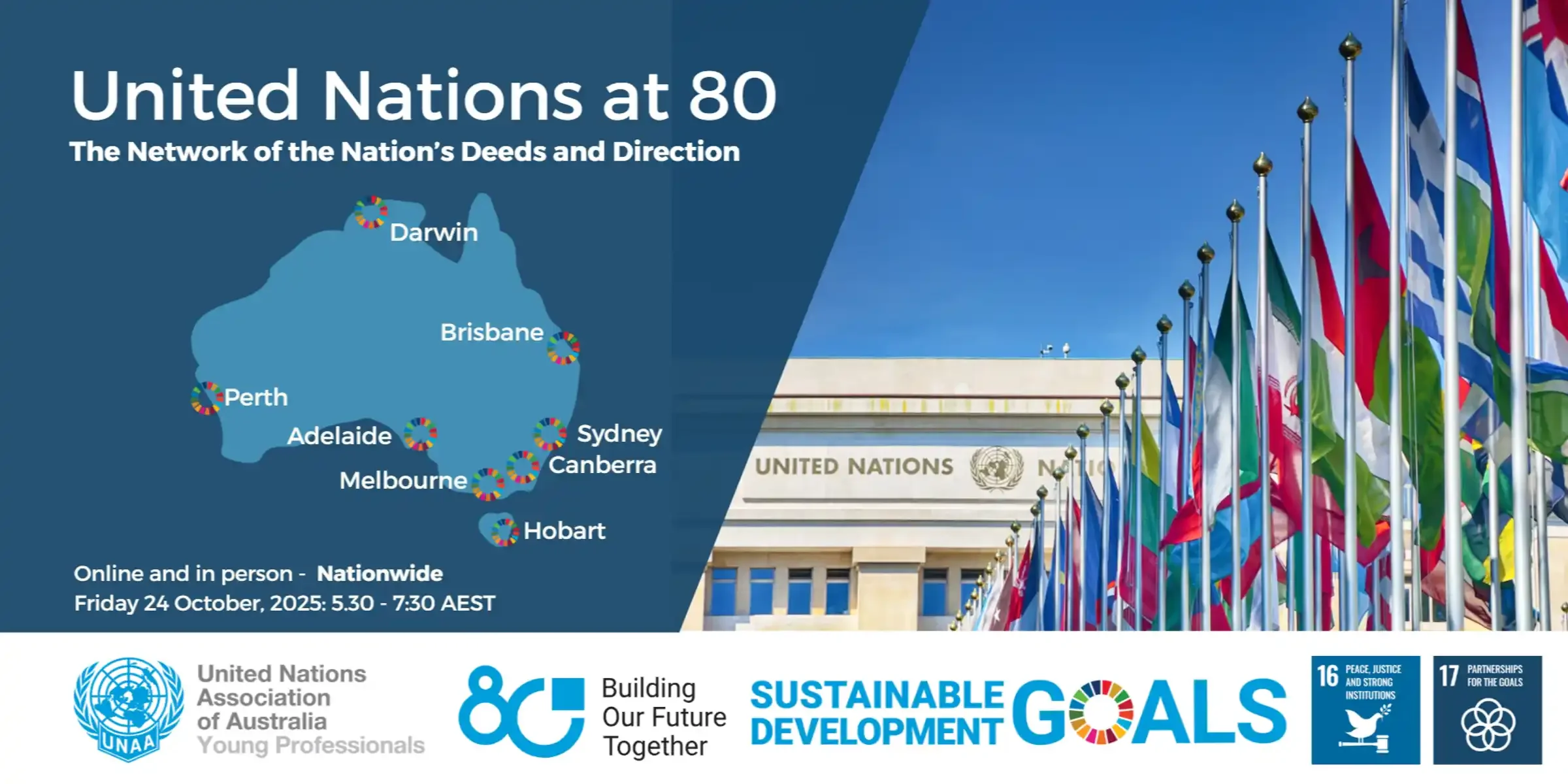 Eighty years ago, on 24 October 1945, the UN Charter came into force, establishing the United Nations. Join with the United Nations Association of Australia Young Professionals as we celebrate 80 years spent promoting peace, human rights and social progress, improving access to healthcare and education, and bettering the lives of countless millions around the globe.